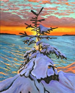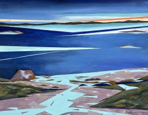 Spooner’s signature playful style uses bright color and a knack for capturing glowing light to portray the drama of a simple day on the coast of Maine.